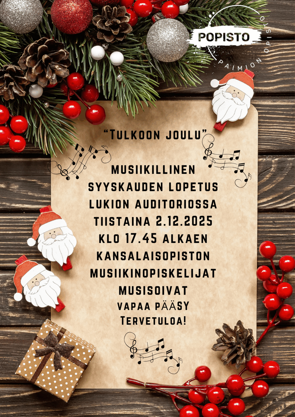 Paimion kansalaisopiston musiikinopiskelijoiden syyskausi huipentuu kaikille avoimeen konserttiin: Tulkoon joulu