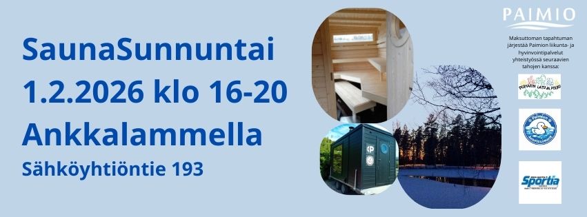 Tapahtuma on maksuton ja sen järjestää kaupungin liikunta- ja hyvinvointipalvelut yhteistyönä Peimarin Ladun ja Polun, Paimion Avantouimareiden ja Sportia Santalan kanssa. Nähdään SaunaSunnuntaissa!